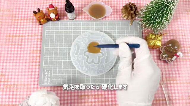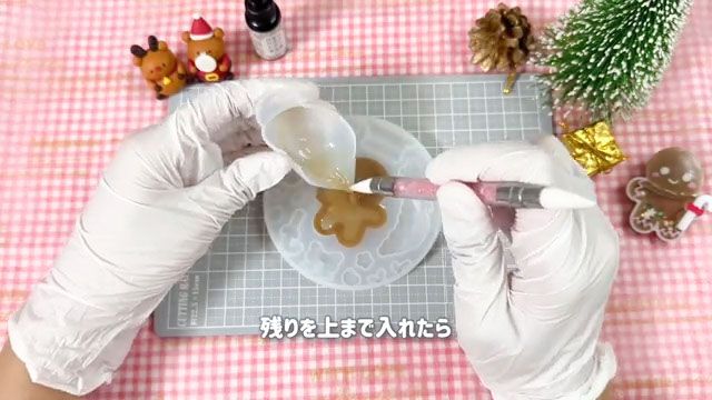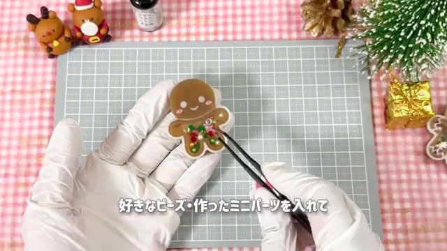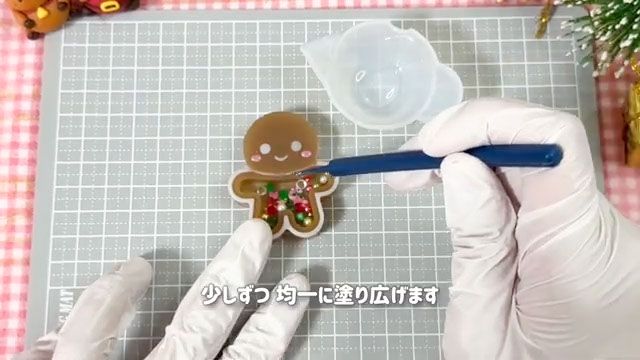 基本的な工程で作れるのでレジン初心者さんでも挑戦しやすいクリスマスレシピです。光にきらめくパーツと愛らしいジンジャーマンの組み合わせが冬の季節を彩るオリジナルのジンジャーマンキーホルダー。ぜひ作って楽しんでみてはいかがでしょうか?