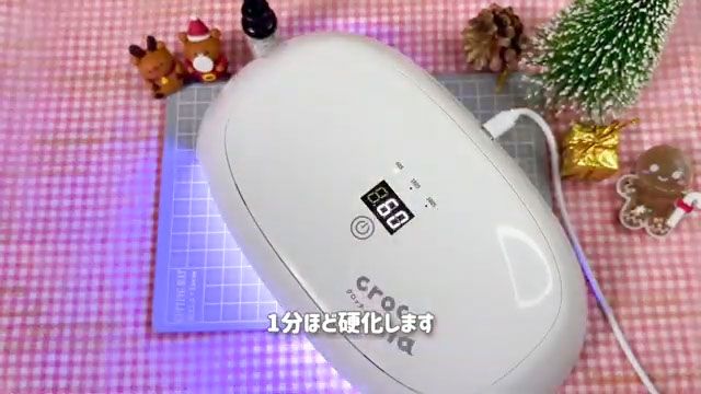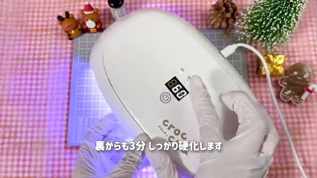 はみ出たところは綿棒等で綺麗にふき取り、1分間硬化します。