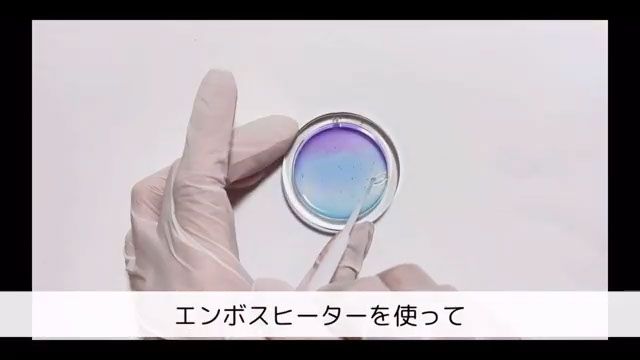 エンボスヒーターで気泡を抜き、3分硬化します。