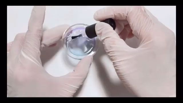 片方にピンクと白を1滴ずつ、もう片方に白を1滴落とし入れます。