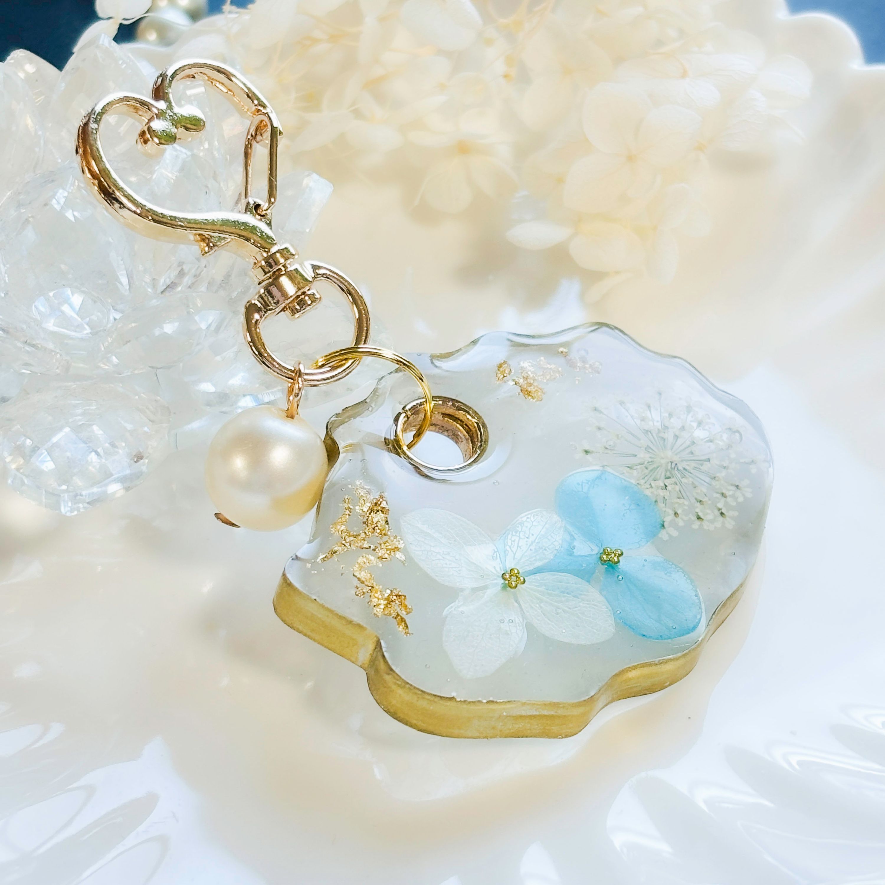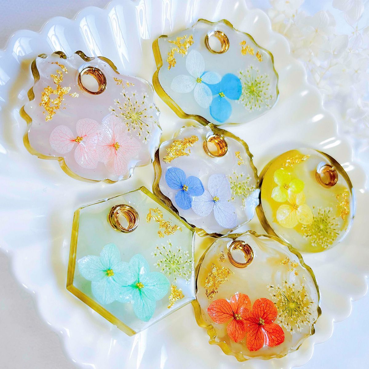 ・金箔や押し花を封入してウェディングやパーティーにも使える上品なピアスやネックレスにする