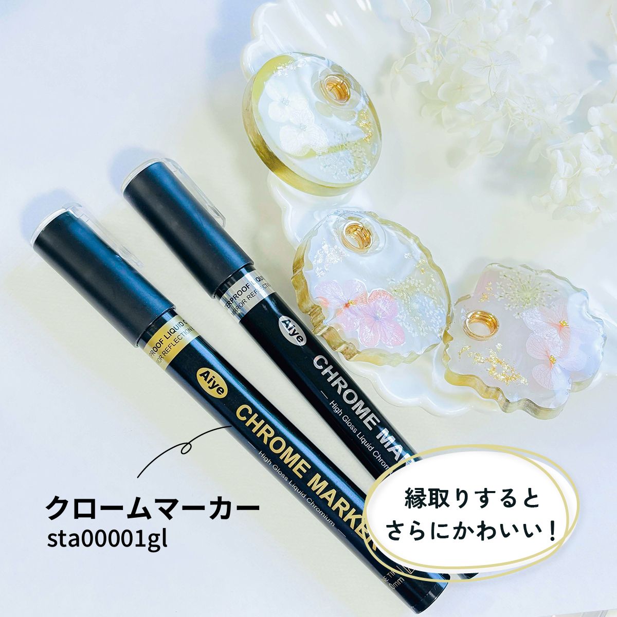 金箔やシェルパウダーをパーツの内部に封入したり、縁をゴールドで彩色したりすれば