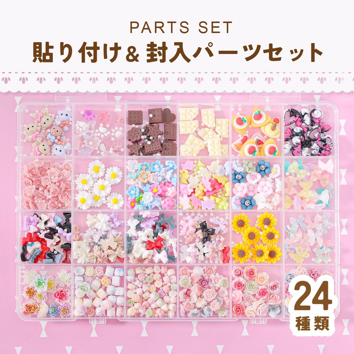 思わずワクワクする、可愛いモチーフが全24種類入ったデコパーツセットです♪