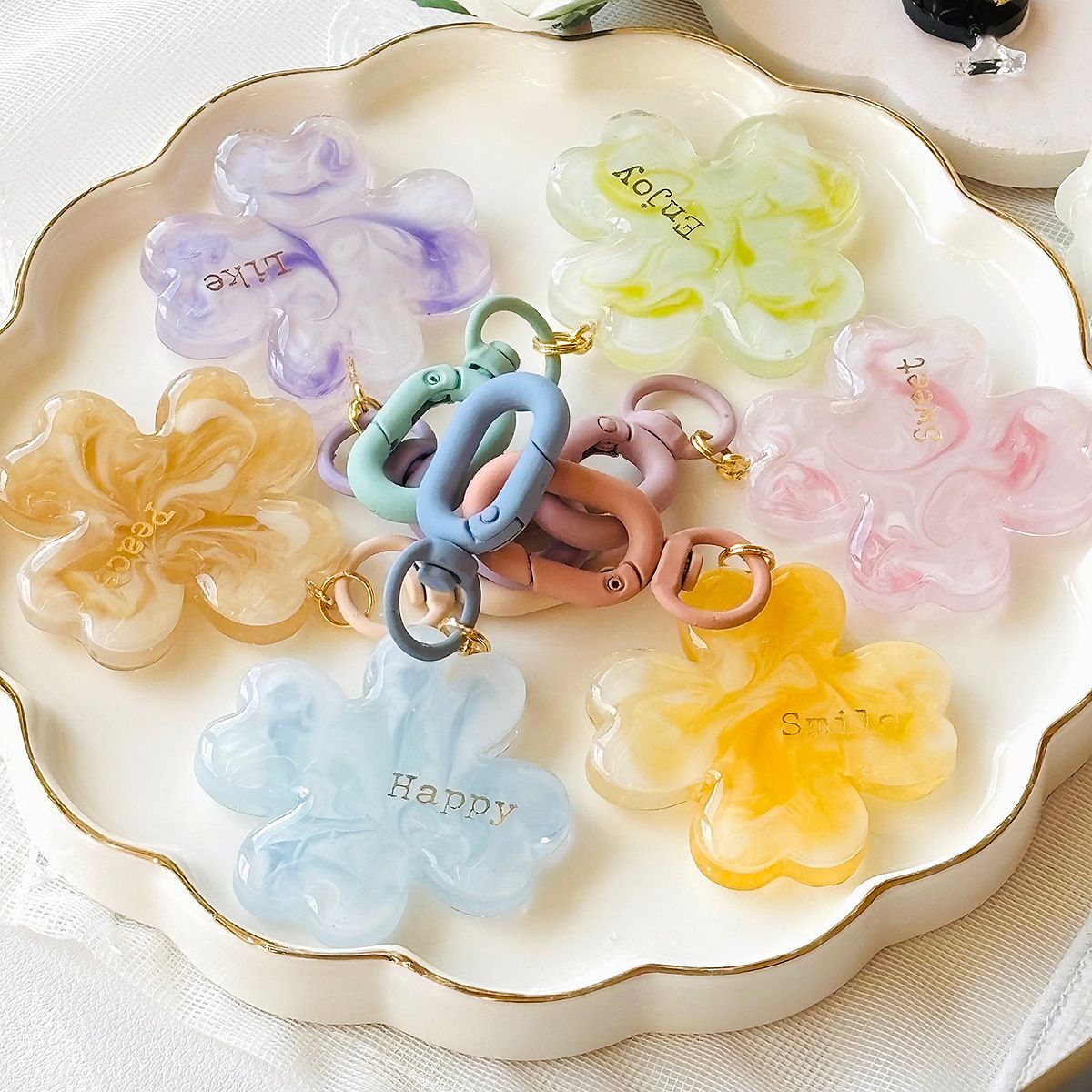 ・「Happy」や「Love」などのメッセージシールを入れ、幸運を願うお守りキーホルダーとして仕上げる