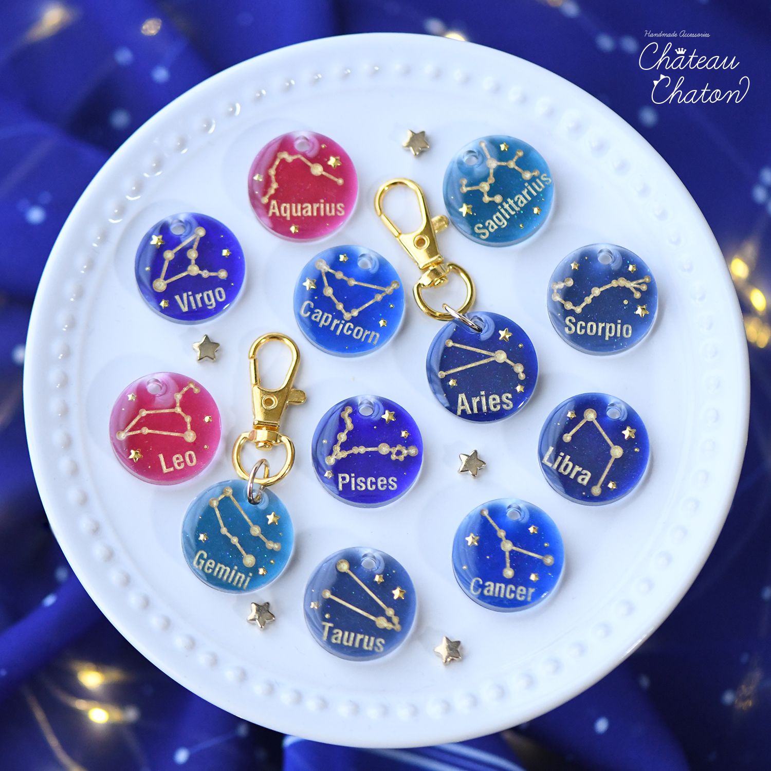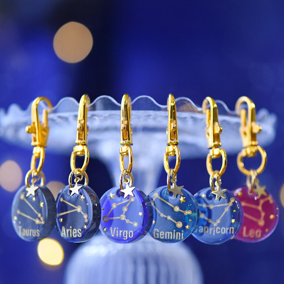 レジン液を流し込むだけで簡単に美しい星座モチーフが完成し、誕生日のプレゼントや、運気アップのお守りチャーム作りにもどうぞ。