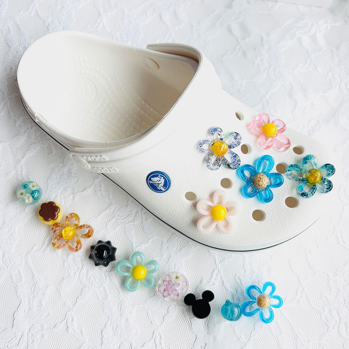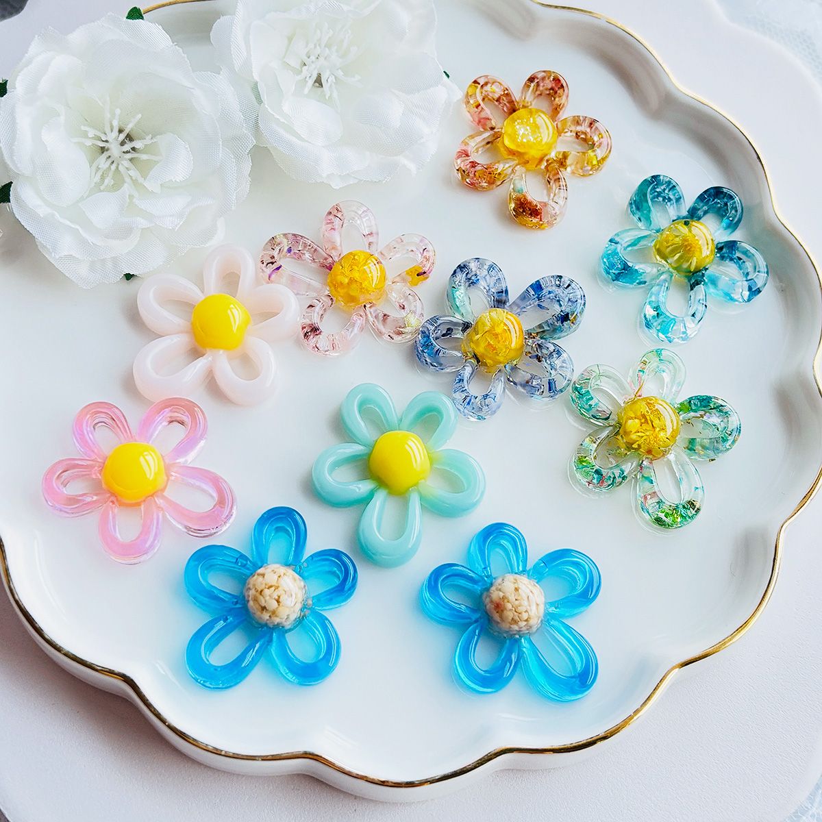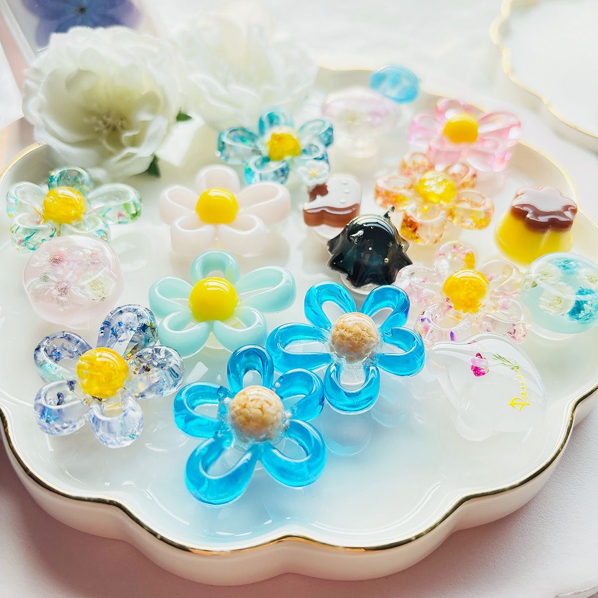 完成したパーツは存在感がありながらも使いやすく、アクセサリーはもちろん、デコパーツやシューズアクセサリー、キーホルダー、ヘア小物などのワンポイントにもぴったり。抜け感のあるループ花びらが、軽やかでかわいらしい印象を演出してくれます。