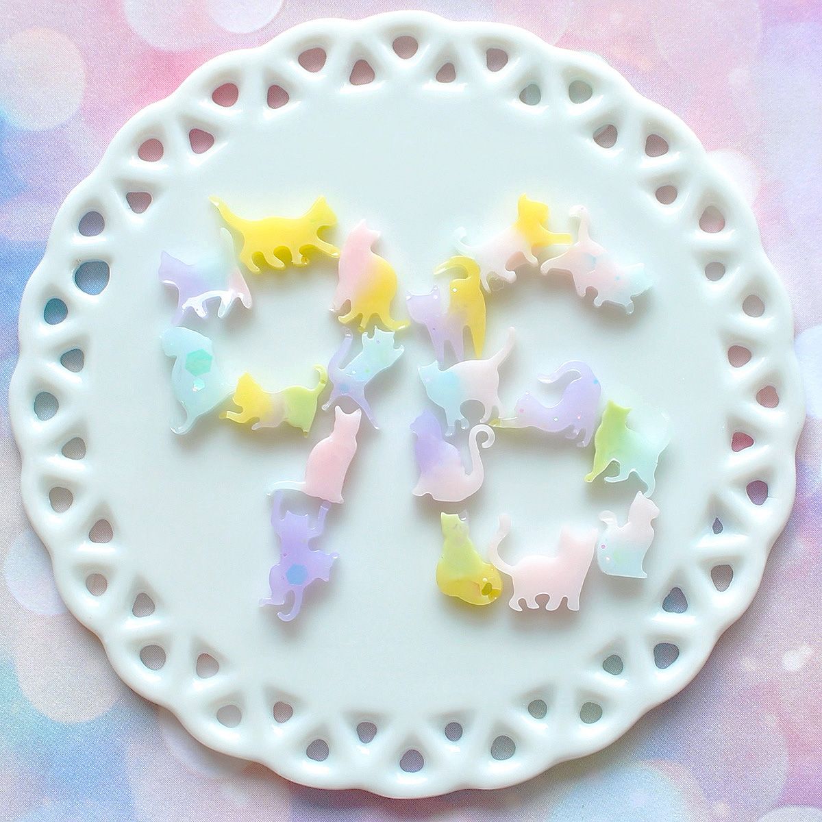 淡いピンクやイエロー、ラベンダー、ミントなどのやさしいカラーで仕上げれば、ゆめかわいい雰囲気に。アクセサリー作りはもちろん、シャカシャカ封入やデコパーツ作りにもぴったりです。小ぶりなので、ピアスやイヤリング、チャーム、キーホルダーのワンポイントにも◎