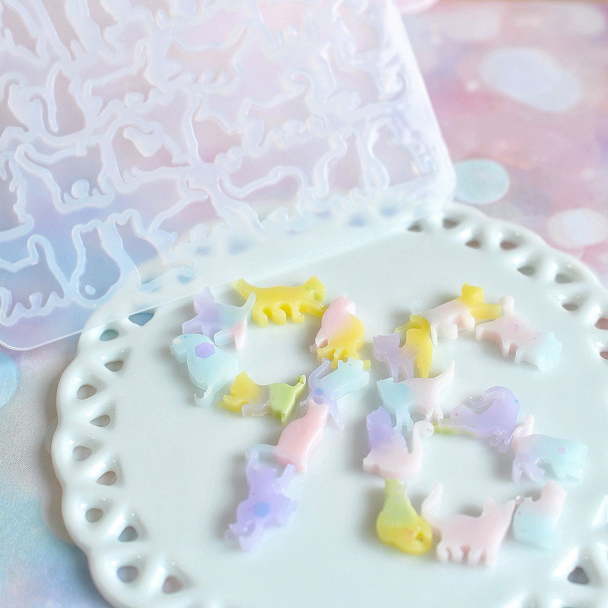 指先より小さなサイズながら、足先やしっぽまでしっかり表現できる繊細な仕上がりも魅力。モールドがとても小さいため、細部までレジンを行き渡らせるにはさらさら低粘度タイプのレジンの使用がおすすめです。
