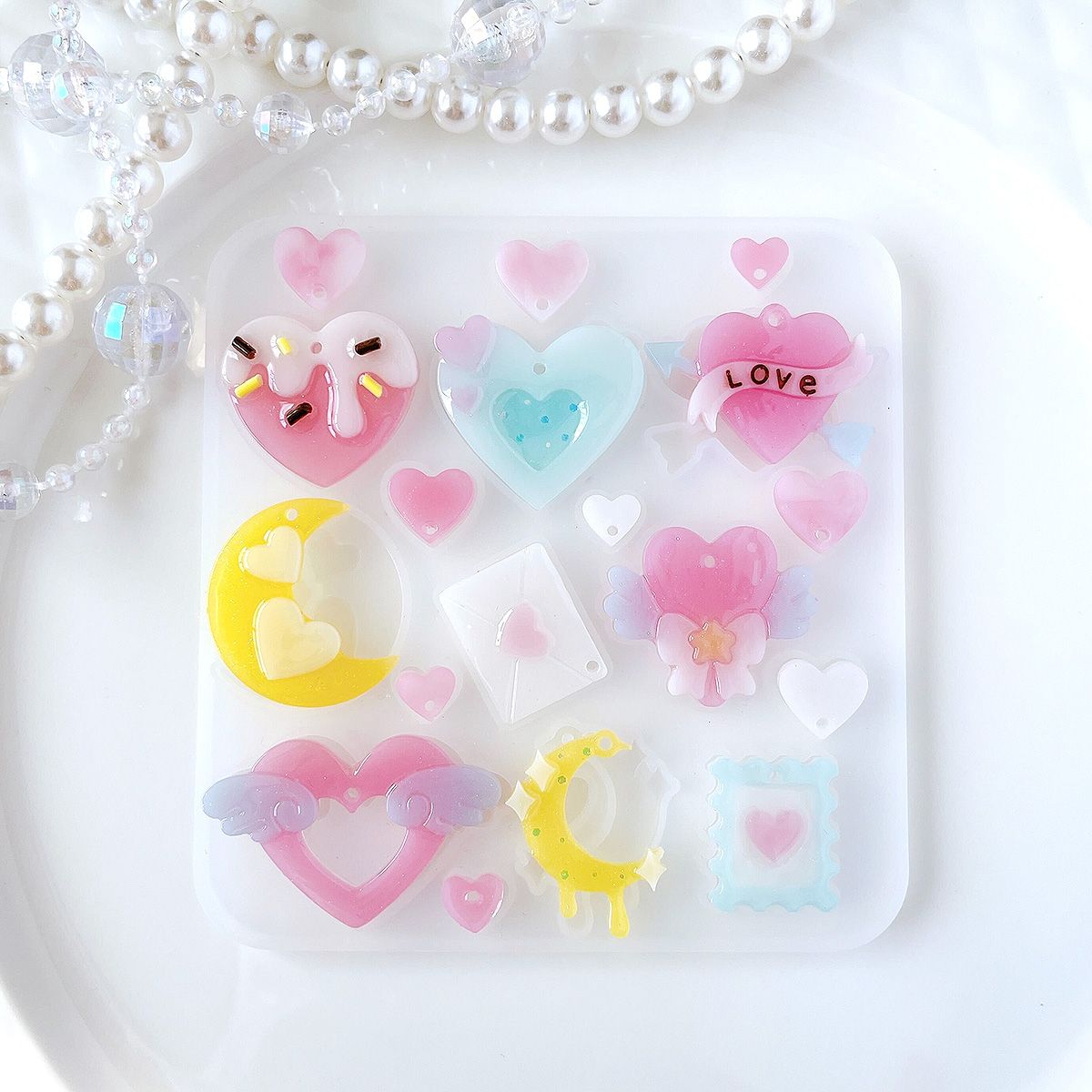 シリコンモールド 穴あき ハートアクセアリー ダブルプレート 8種¥500 ¥480 税込