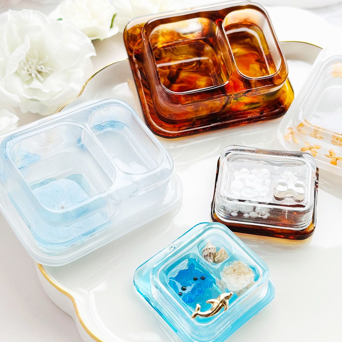 大きいモールドですが、2液性レジンは硬く出来上がりすぎる為、蓋がはまらない可能性がございます。