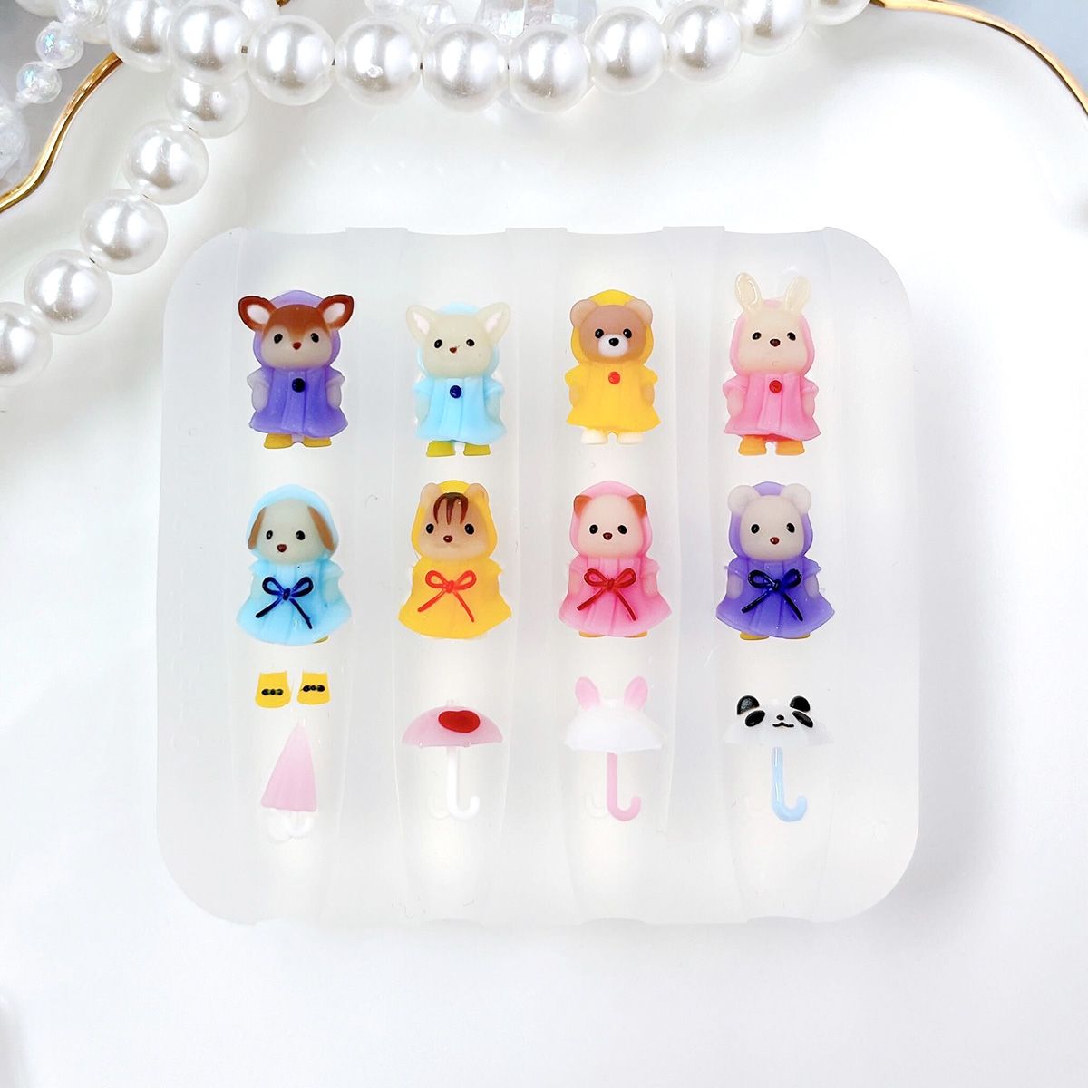 レインコートを着たクマやウサギなどの動物が8種類、そして傘・長靴モチーフが5種類の合計13種類のかわいい動物たちが作成できます。