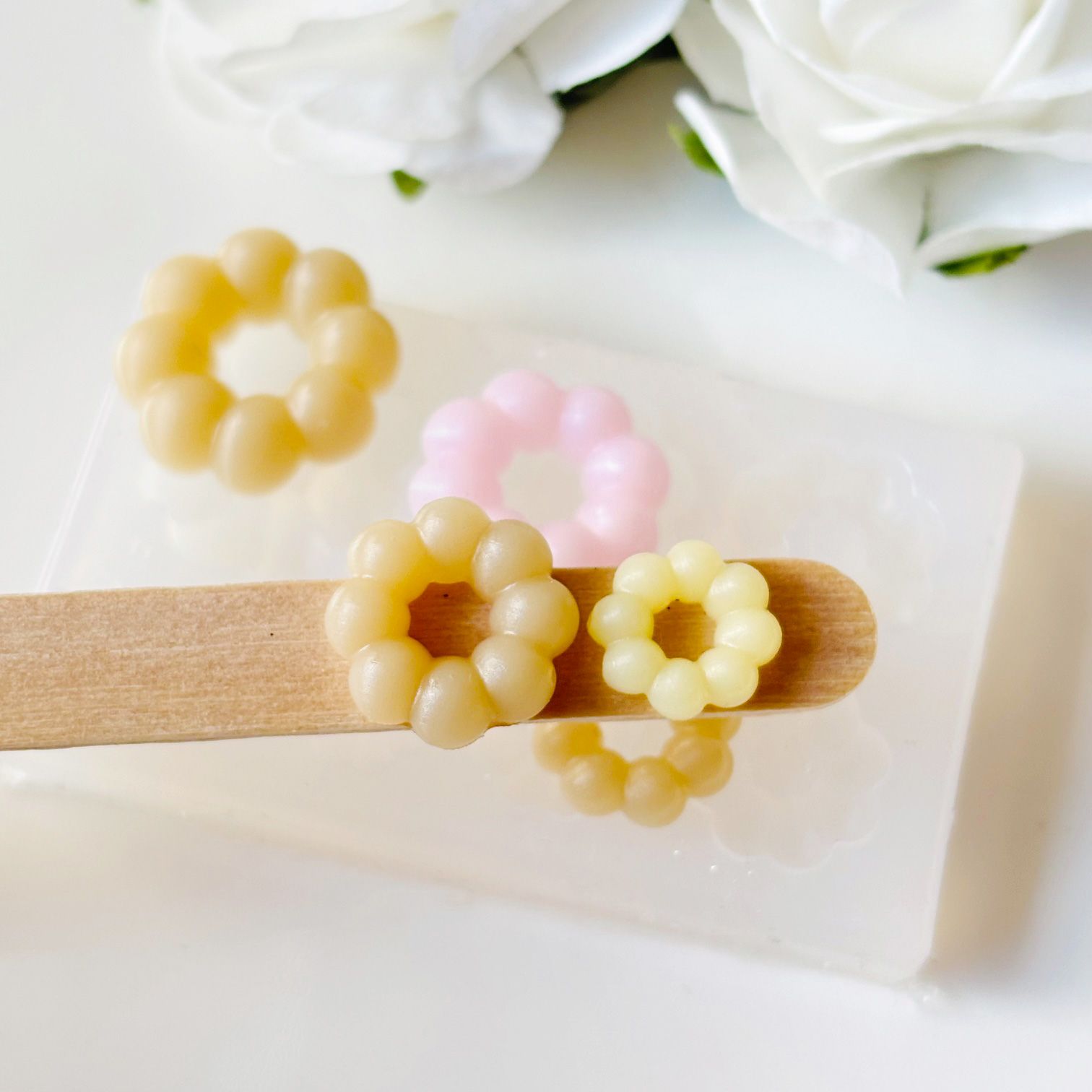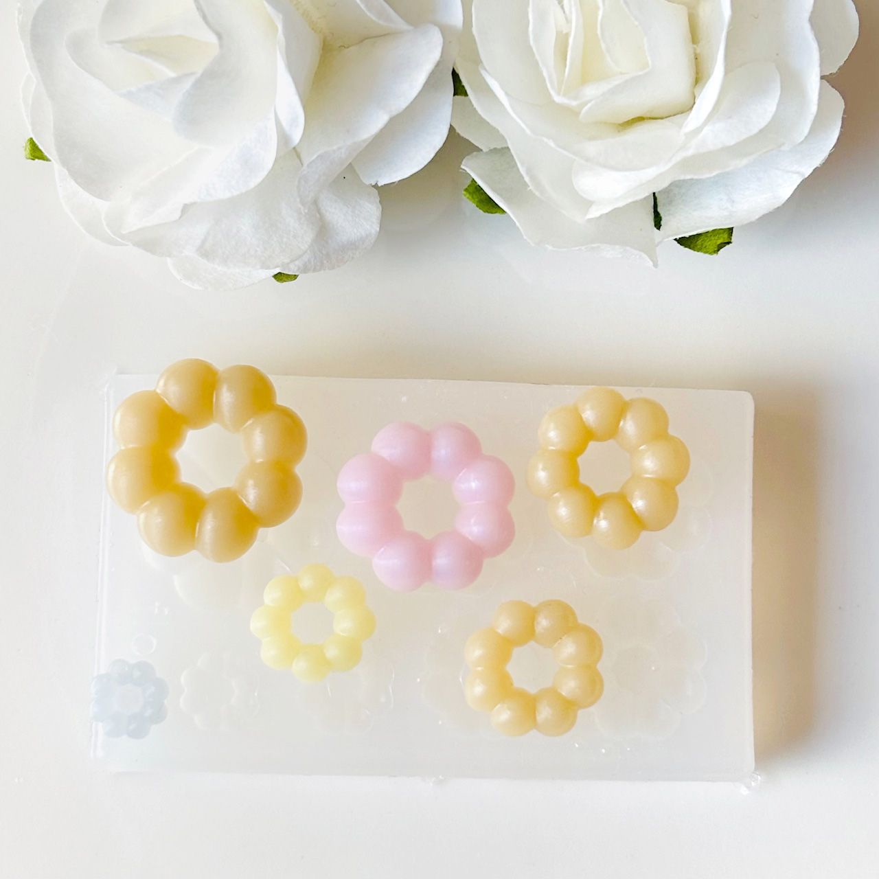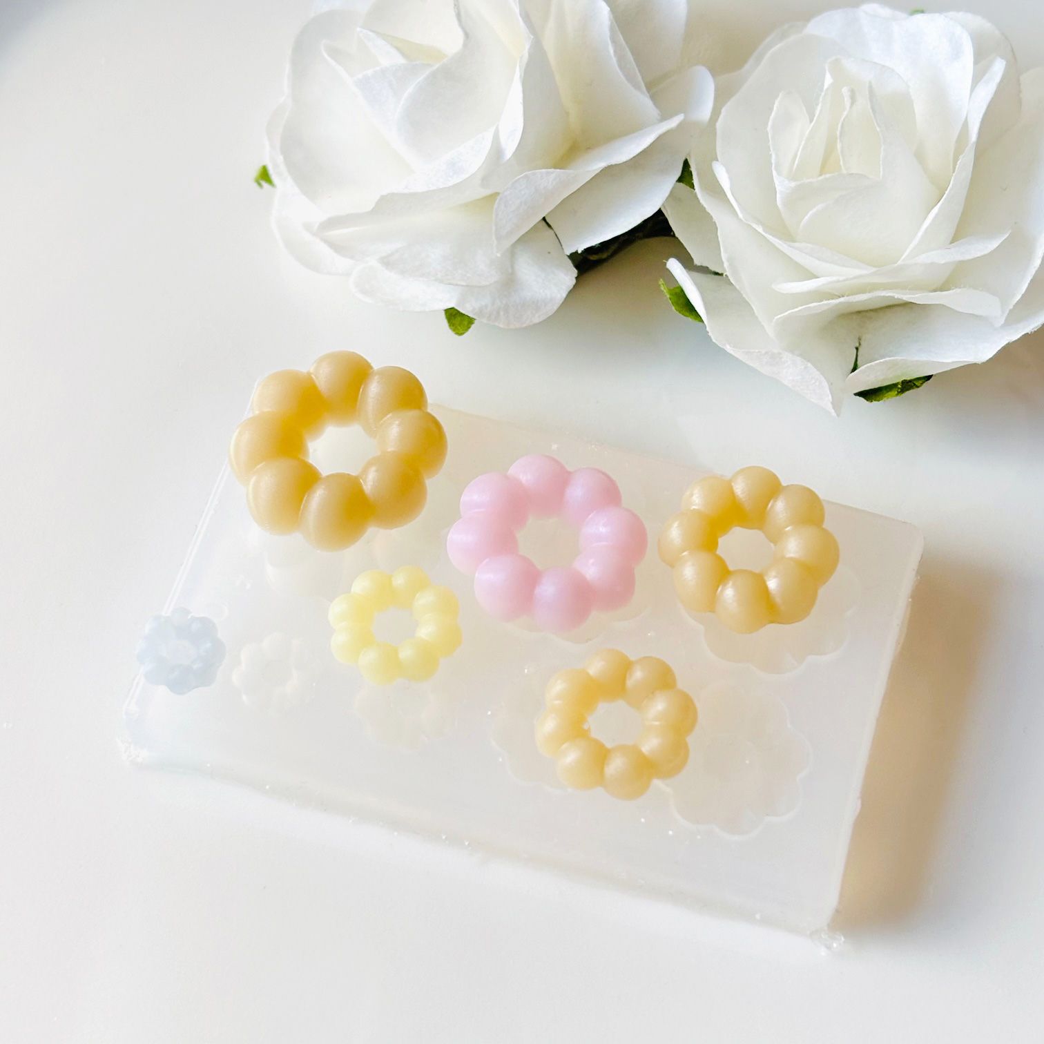 本物そっくりの質感が出るように色付けしたり、ミニチュアフード系の作品に愛らしいアクセントを加えたりするのに便利です。このモールドで、甘くて可愛いオリジナルパーツを量産してみてください。
