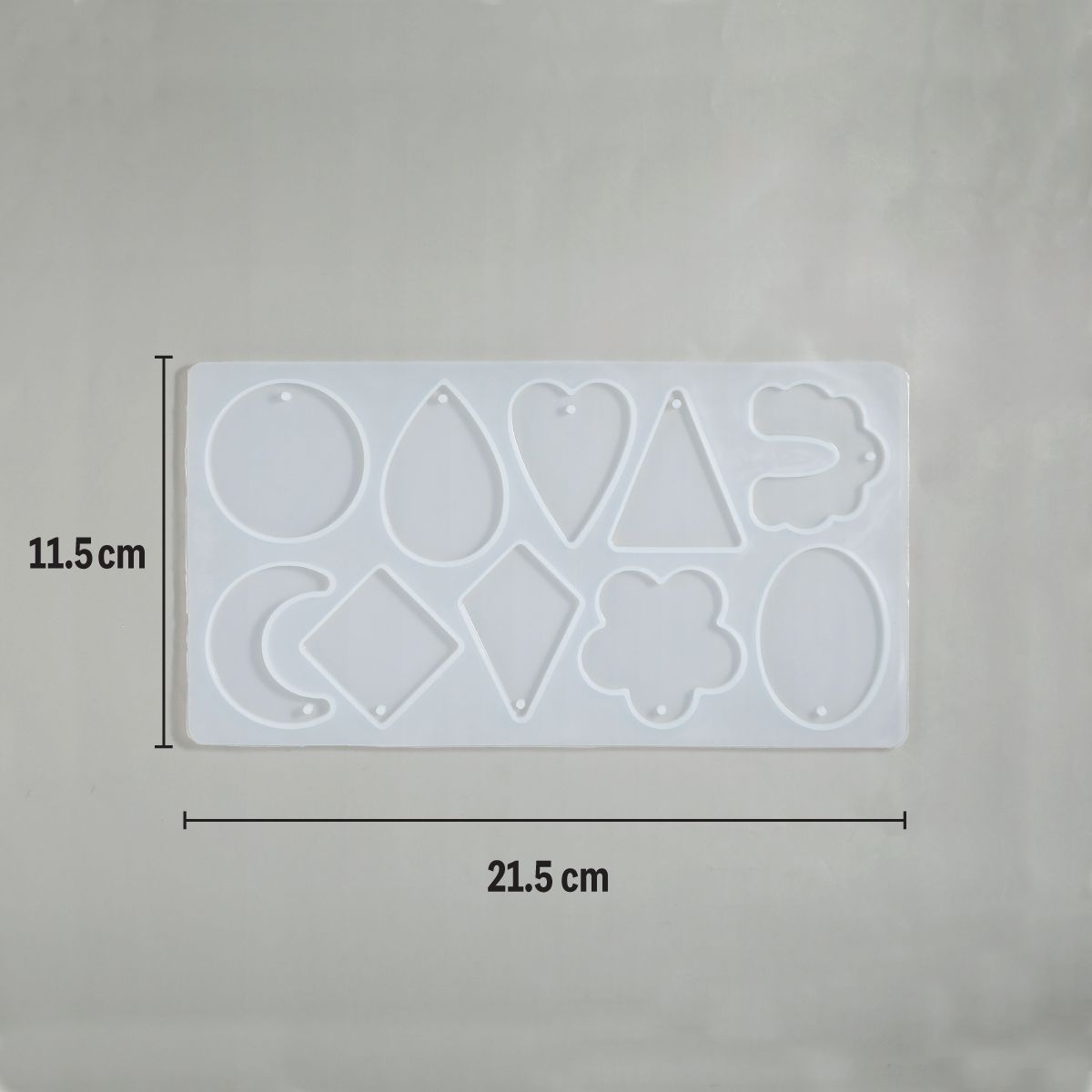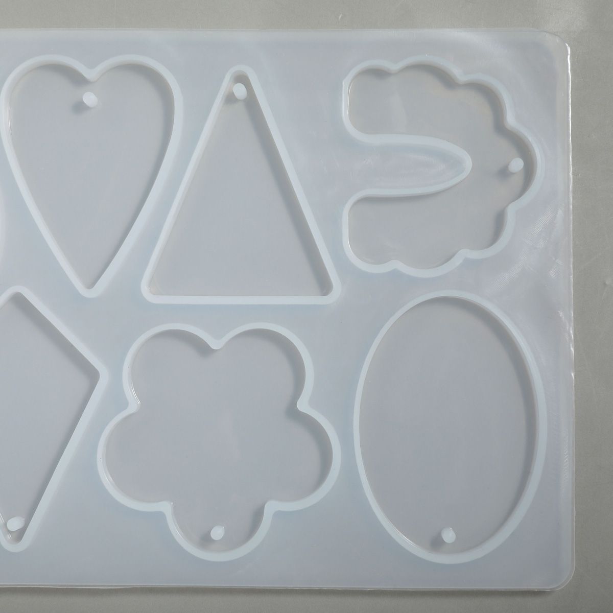 ハートや月、お花などアクセサリー制作で人気の高い10種類の形状が一つになった、大判サイズのシリコンモールドです。