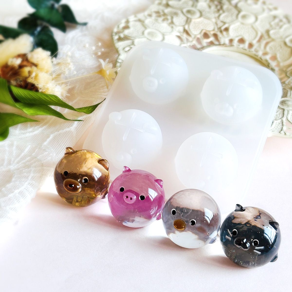 くま・ぶた・ねこ・ひよこの4種類のアニマルパーツが作れます。ぷっくり立体感のある、かわいいパーツに仕上がります。小さなお耳とお手々もキュートなポイント。
