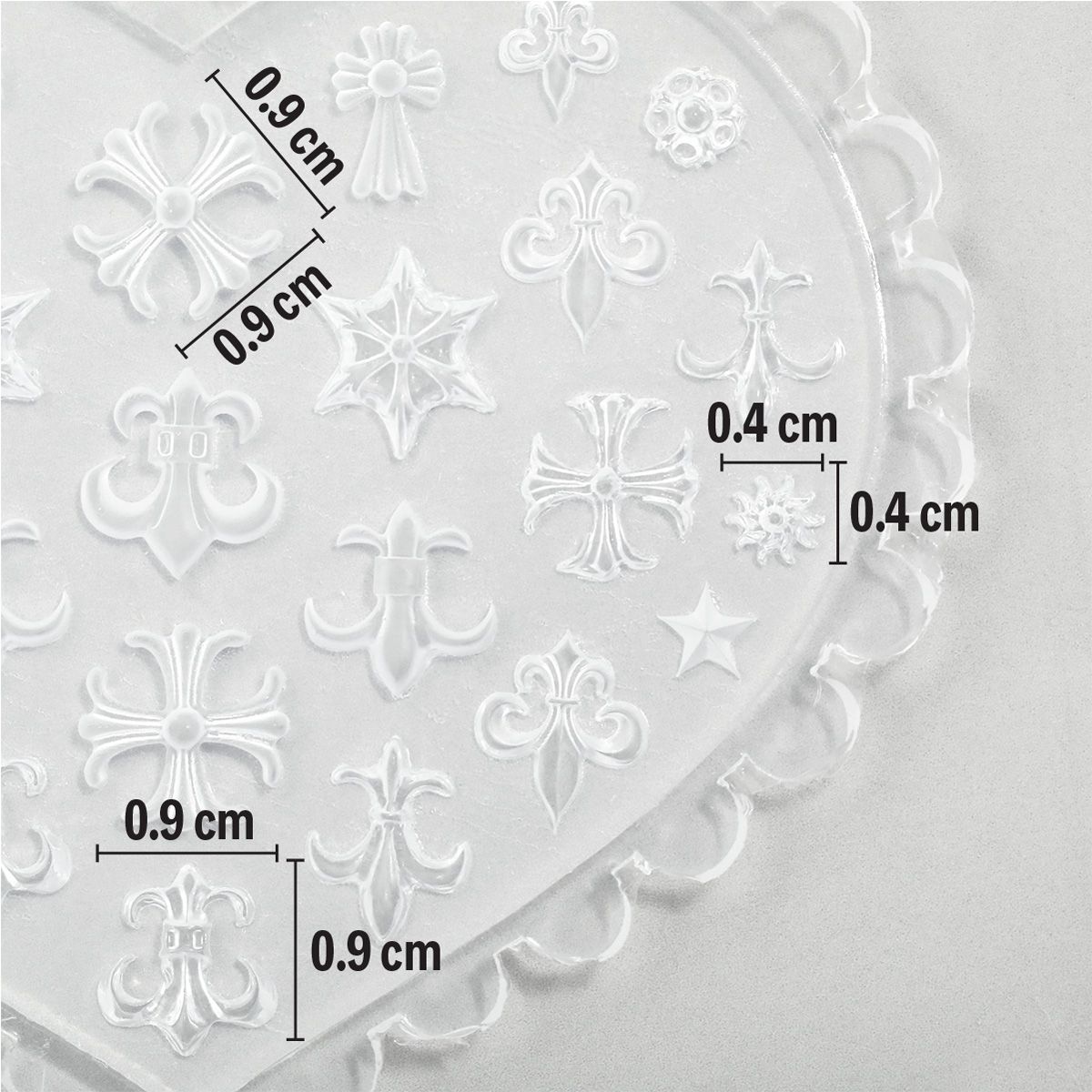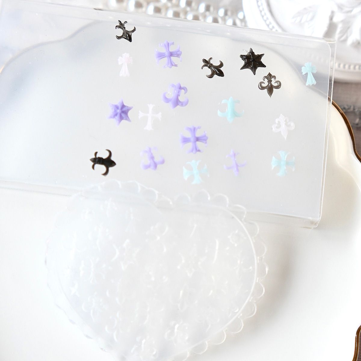 さまざまな十字架や紋章モチーフが揃い、ゴシック調・クラシカルな雰囲気の作品づくりにぴったり。ハート型のプレートも可愛く、制作時間も楽しくなります♪