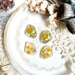 ※硬化中(UV,LEDライト照射中でレジン液が反応している間は黄色く見えますが反応が終わり落ち着いてくると透明になります。