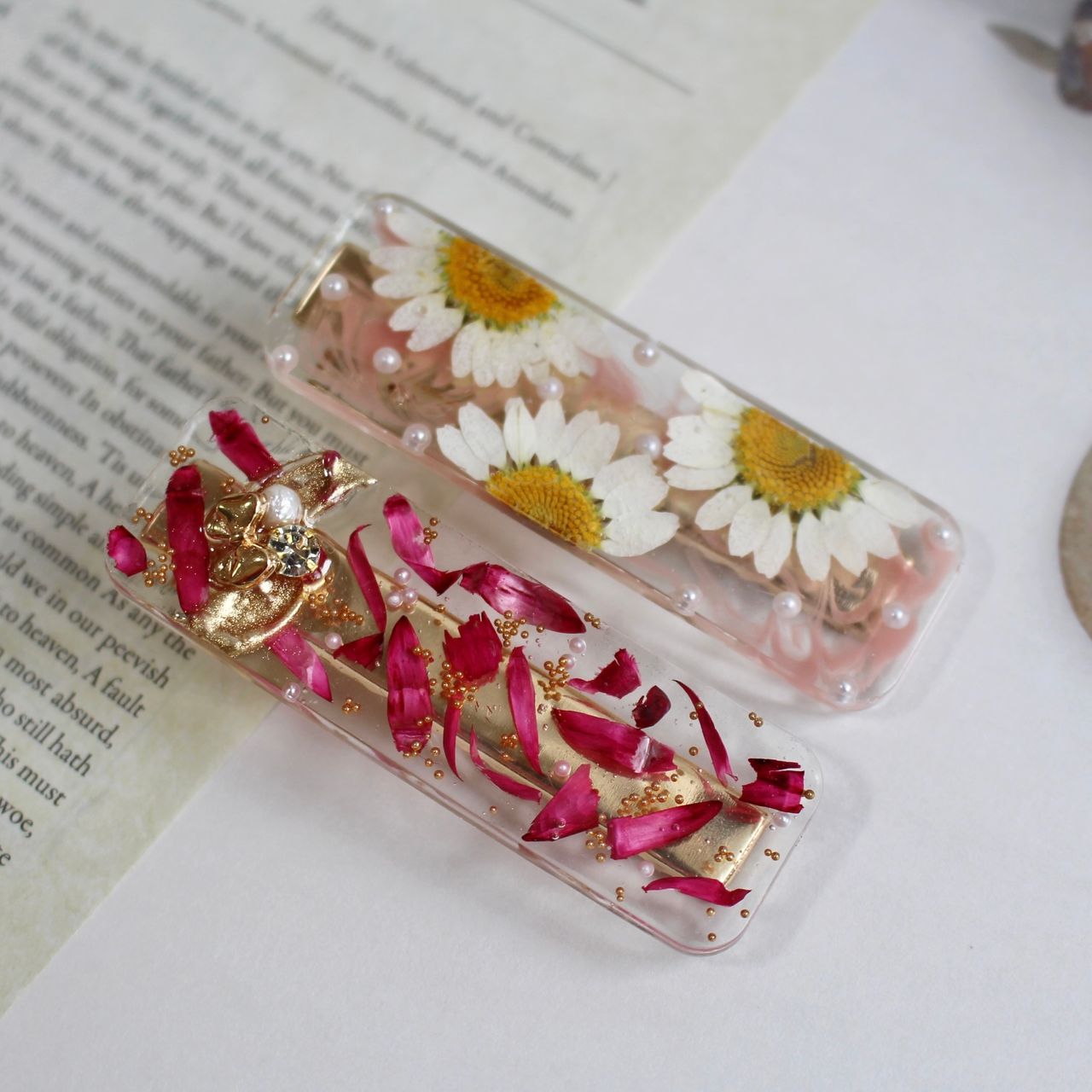 ドライフラワーや押し花をレジン液でとじこめて、華やかなアレンジもおすすめです。