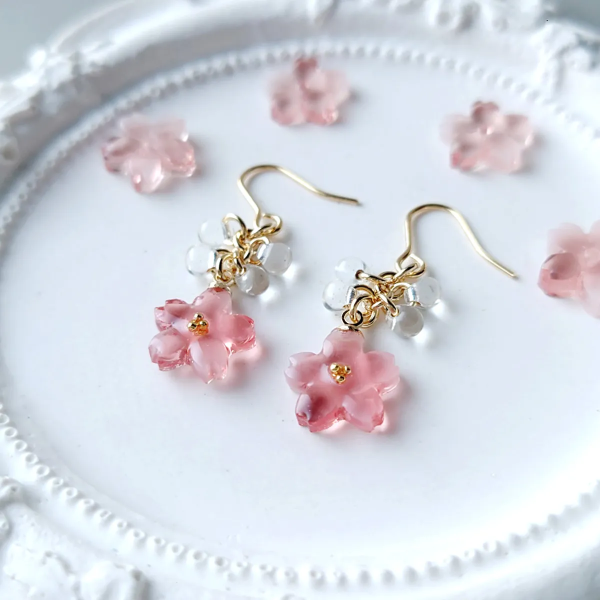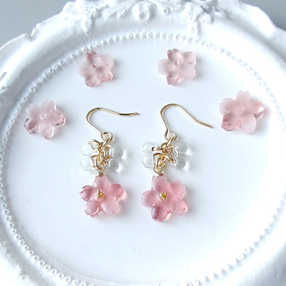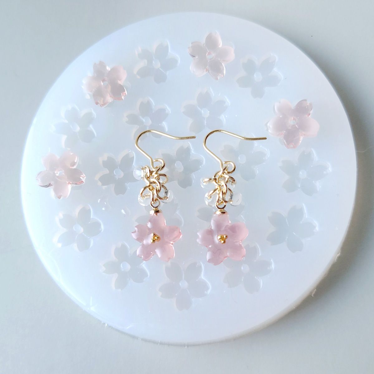 一度に20個の小さな桜のパーツをおつくり頂けます。小ぶりなサイズがとってもかわいい♪底面が平たいカボションタイプなのでピアスやイヤリング、リングなどの台座に貼り付けるだけで簡単に完成!