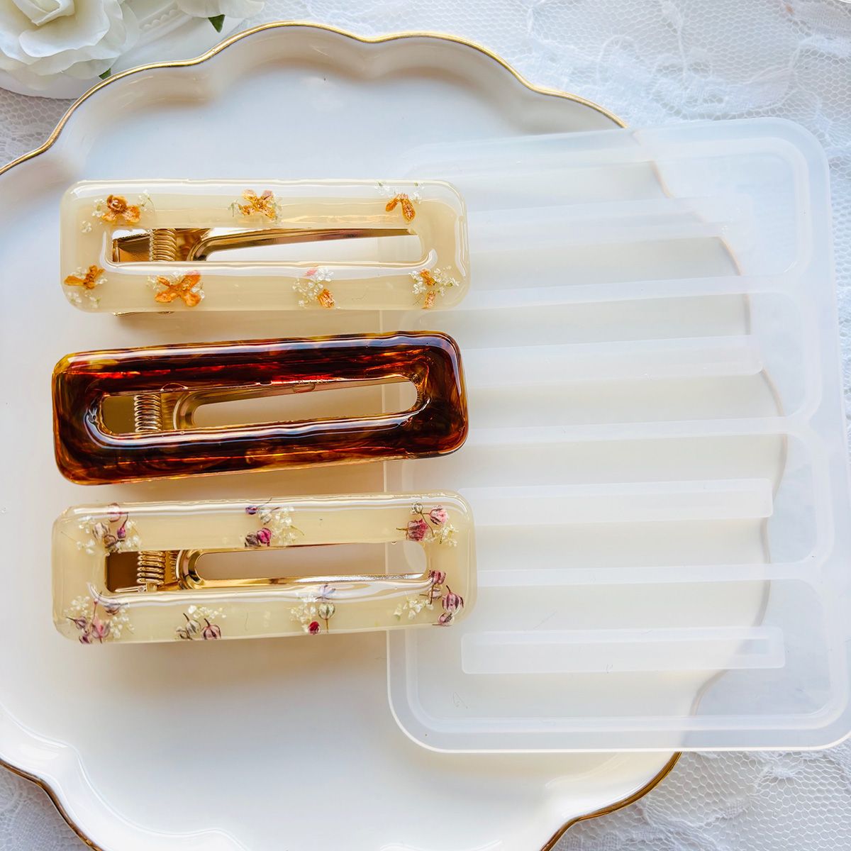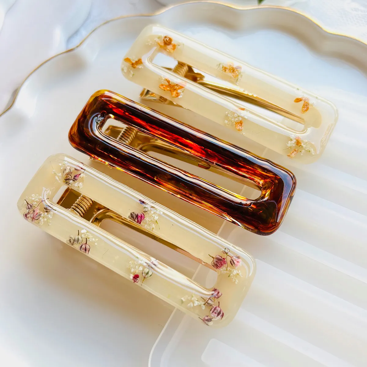 ニュアンスカラーで作ったりお花をそっと閉じ込めれば大人なヘアクリップに◎
