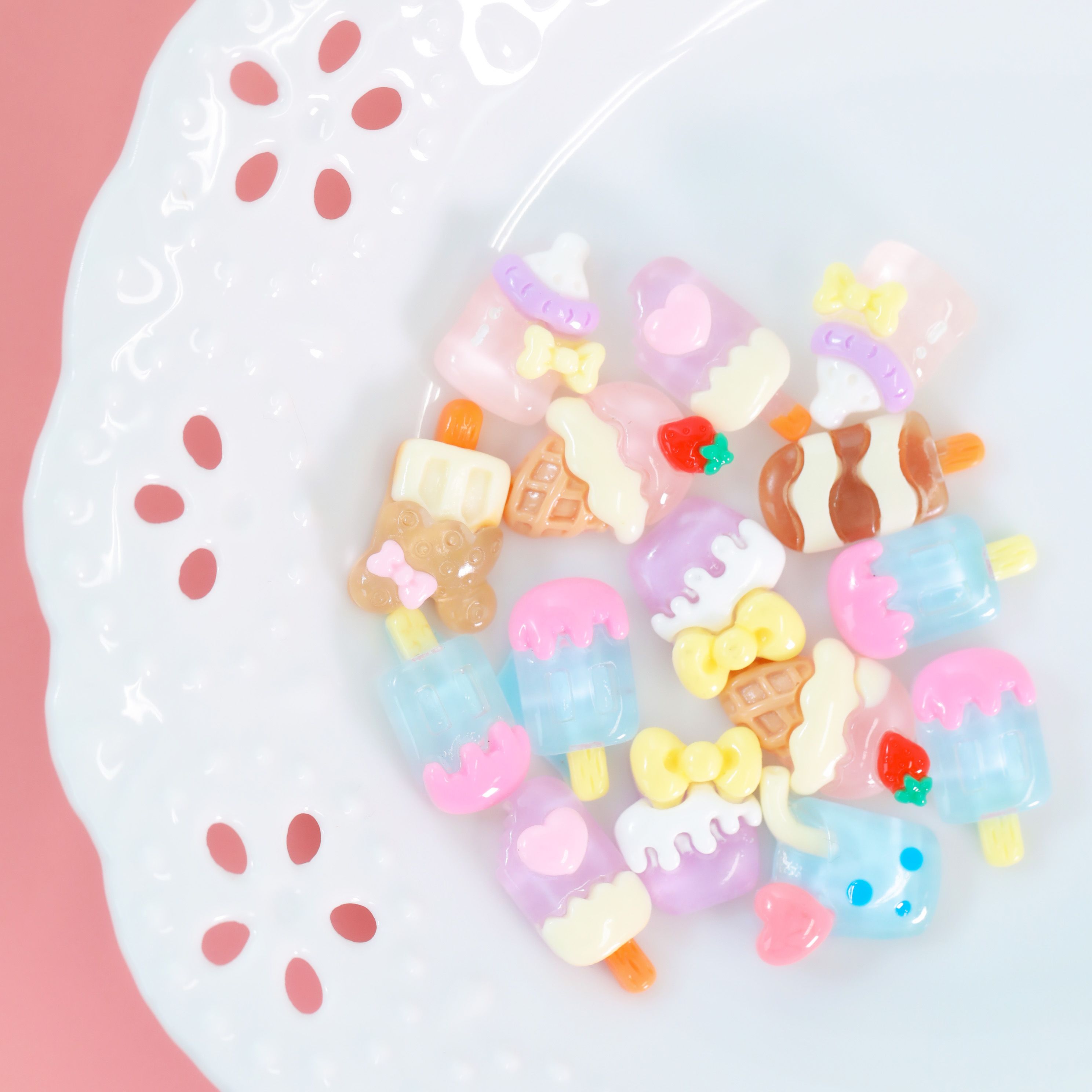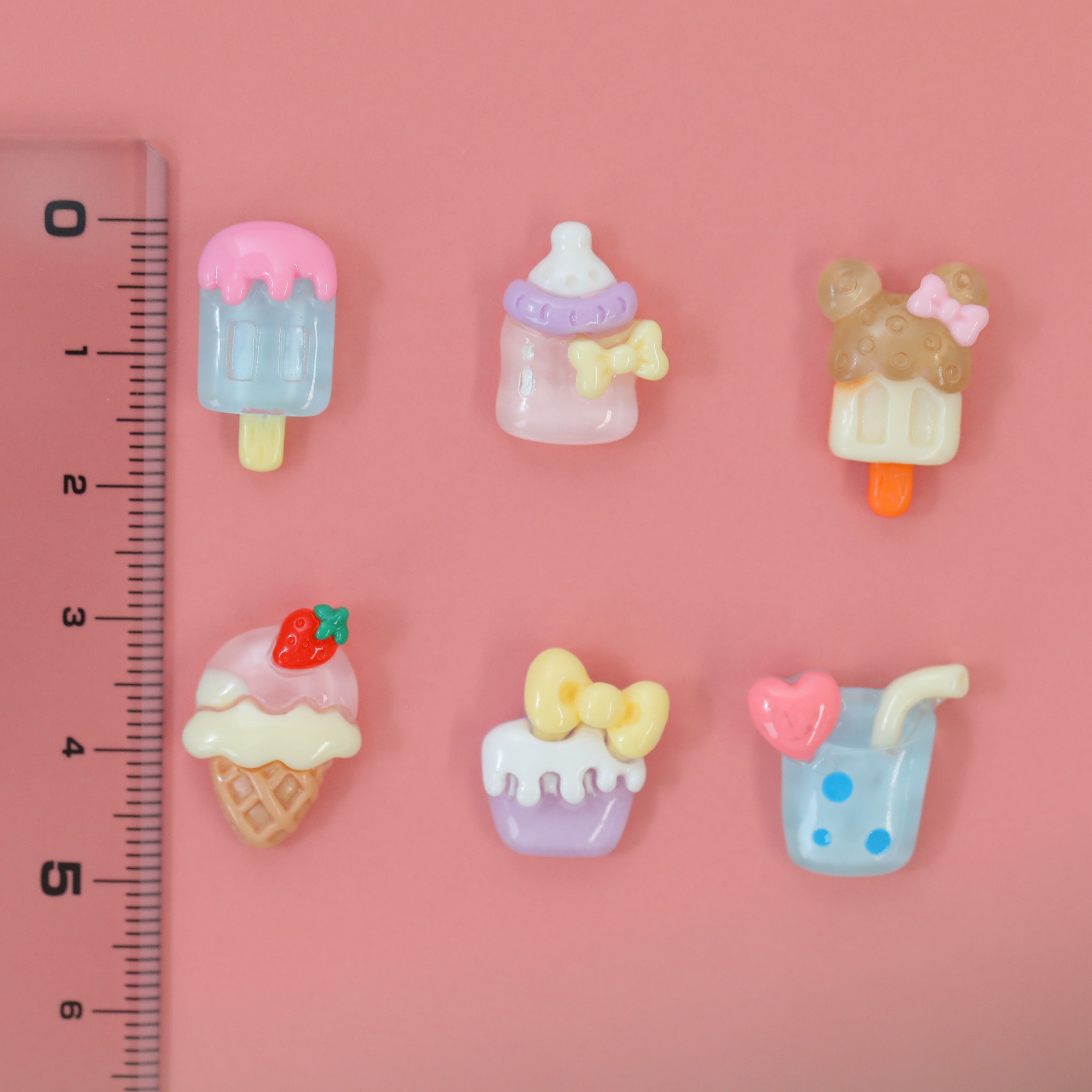 ドリンク、アイスクリームなどの可愛いパーツがミックスで入っています。