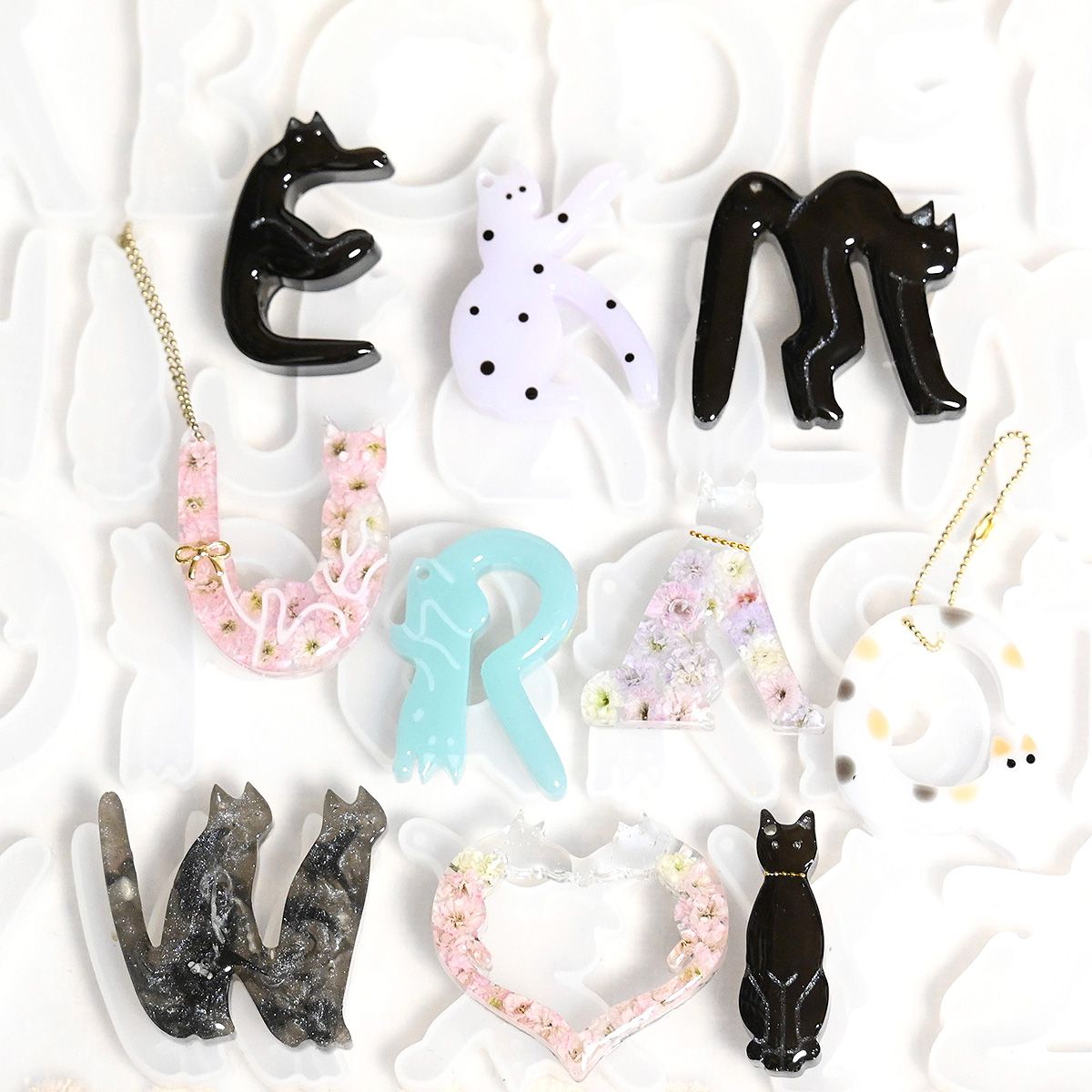 ねこ好きな方必見!アルファベット×ネコのシリコンモールドをご用意しました♪それぞれの文字に、さりげなくネコのシルエット。