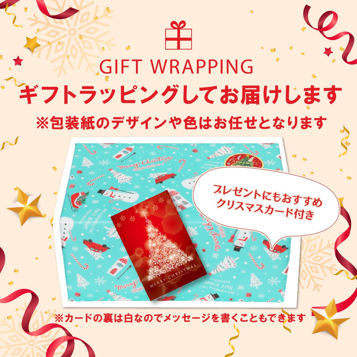 「Merry Christmas」のメッセージカードを添えてお届けします。