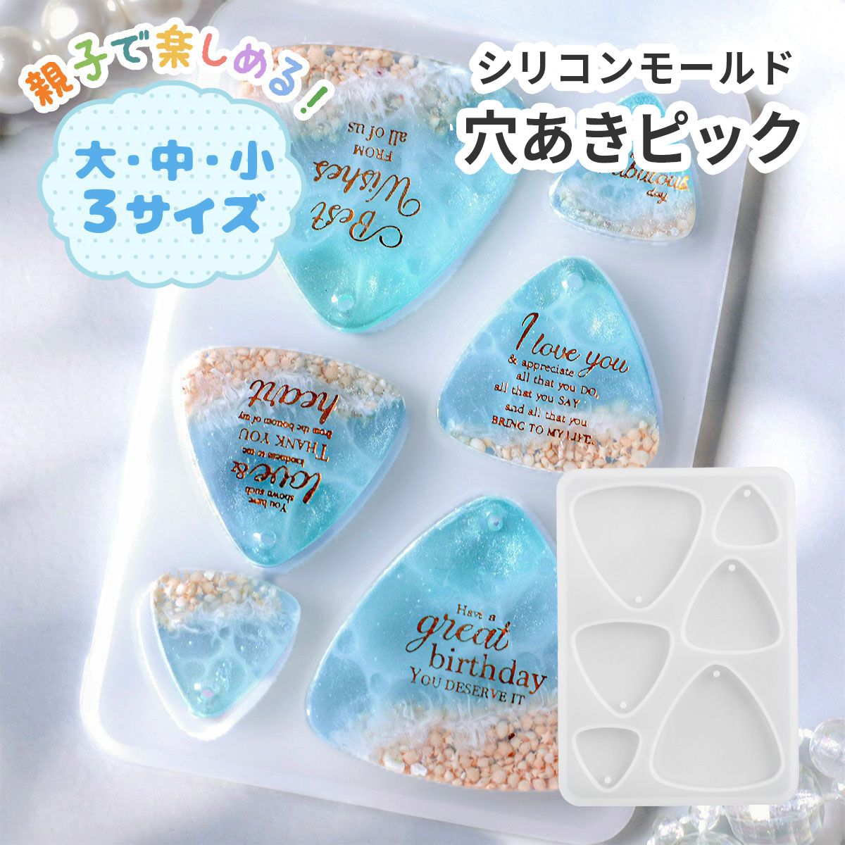 ・大きな三角形の型を使い、ポジティブなメッセージを封入してキーホルダーやバッグチャームのメインパーツにする