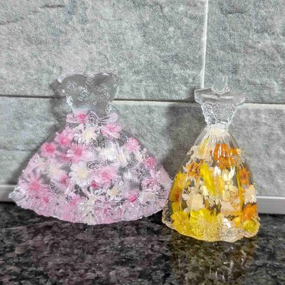 ドライフラワーやパールをスカート部分に封入したり、グラデーションカラーで着色したりすれば